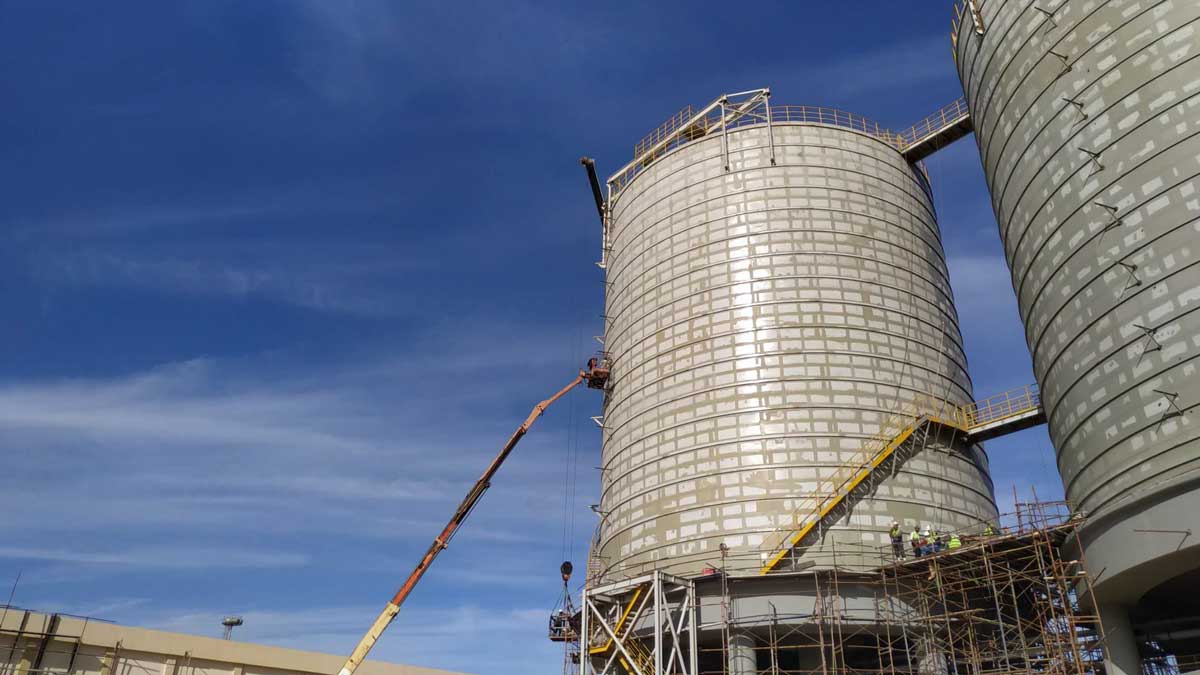 大型水泥厂成品仓、熟料库:例如 4×10000t、6×10000t 等焊接钢板仓系统,用作主储存、均化仓。