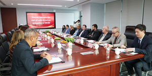 2025年11月3日,在第十八届中国—拉美企业家高峰会开幕式结束后,由巴西米纳斯吉拉斯州中西部城市联盟(AMMECO)主席丹尼尔·雷斯率领的代表团一行莅临实荣访问交流,双方围绕农业、建材等领域的储运基础设施建设进行了深入探讨。实荣高层领导及相关部门负责人出席接待。