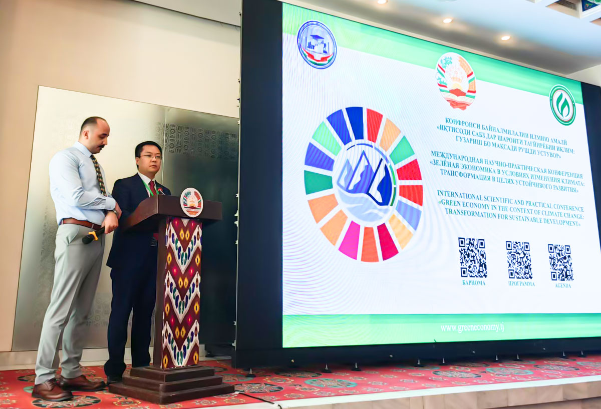 当地时间5月15日,塔吉克斯坦绿色经济转型国际会议在Dushanbe举办,塔吉克斯坦副总理 Dilrabo Mansouri 女士出席活动并致辞。来自政府机构、学术界、国际组织、外交使团、企业和民间社会的 150 多名与会者参加本次活动。实荣董事长温鹏出席活动并分享了实荣在智能化储运领域的创新成果,展现了中国企业在绿色低碳发展中的技术实力。