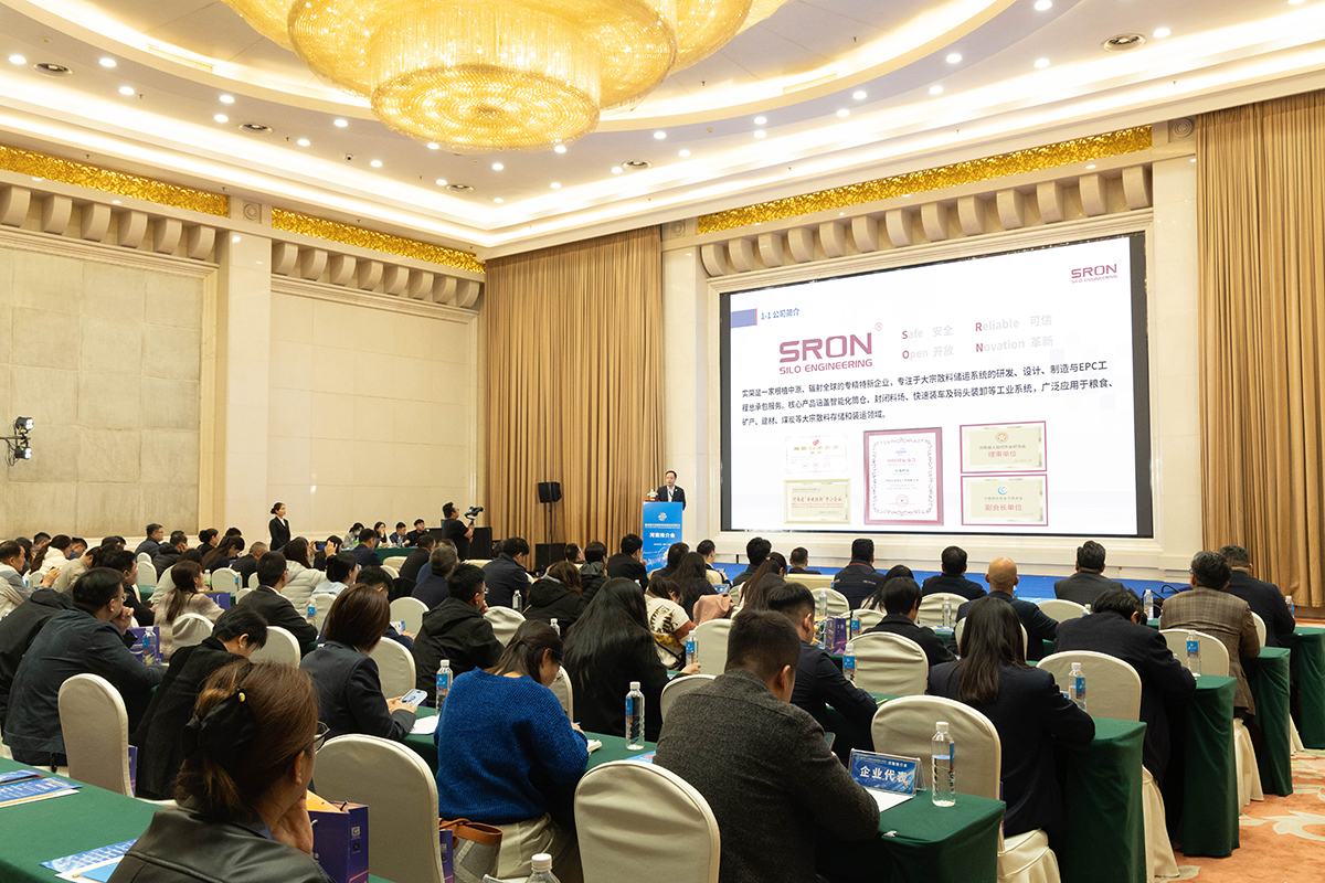 会上,温鹏董事长介绍,作为国家级高新技术企业、“专精特新” 企业,实荣专注大宗散料储运系统研发、设计、制造及 EPC 总承包,核心产品覆盖智能化筒仓、封闭料场等,广泛应用于粮食、矿产等领域。围绕粮食安全与绿色储粮,公司研发应用多项核心专利:新型太阳能智能控温粮食钢板仓、智能化卸粮系统、带防粮食破碎装置的钢板仓、卸粮坑除尘风网加强系统等,以技术创新守护粮食品质、践行社会责任。同时,公司打造智能仓储、远程运维、数字孪生等成果,运用光伏 + 储能微电网、无人机巡检等技术践行 ESG 理念。目前,实荣已在全球 40 多个国家和地区建成超 1000 座智慧筒仓,散料总储量突破 300 万吨,核心市场覆盖 “一带一路” 沿线,凭借成熟技术与丰富经验,已成为全球粮食安全基础设施建设领域的重要参与者与技术输出者,为中国农业标准走向世界贡献河南力量。