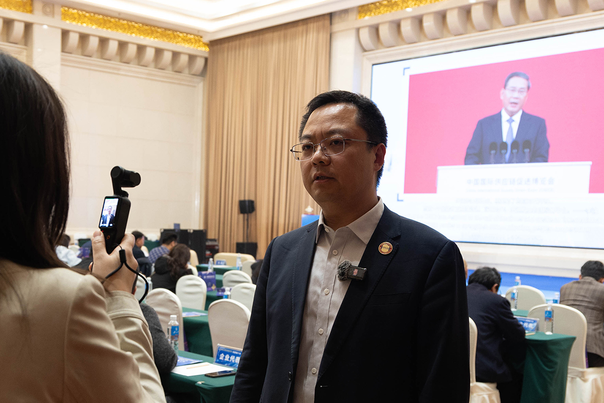 实荣董事长温鹏现场接受《中国贸易报》记者采访